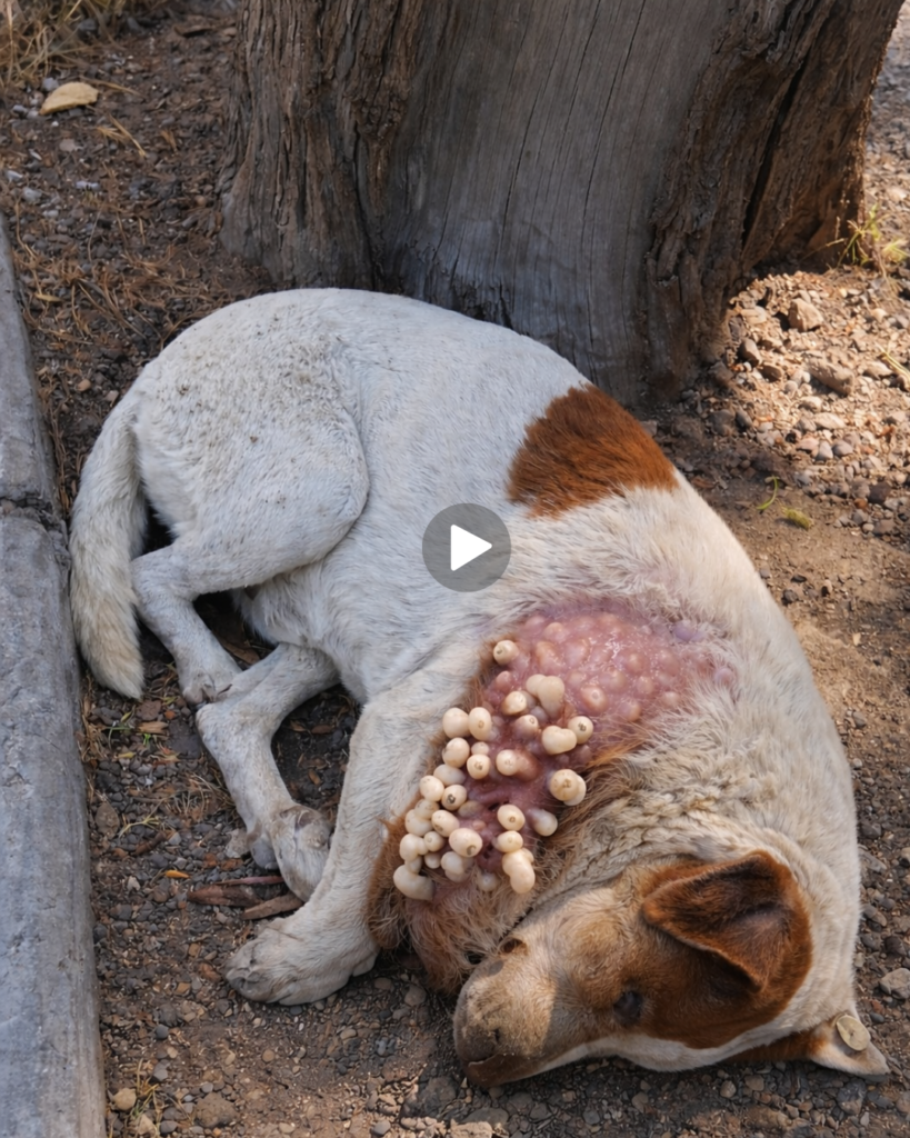 The image above captures a scene that is difficult to witness—a dog lying helplessly on the ground, its body invaded by clusters of maggots feeding on living flesh. This condition is known as myiasis, and it is one of the most severe yet preventable afflictions affecting dogs, especially strays and neglected animals.