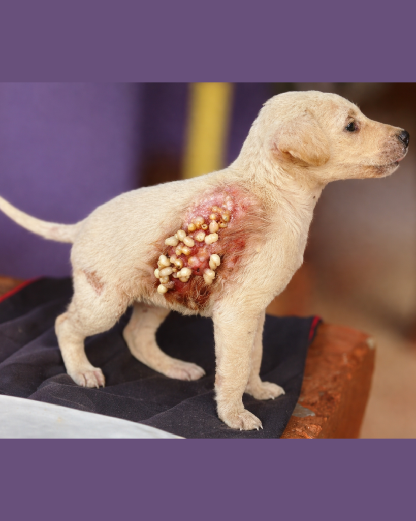 When it comes to caring for young animals, especially puppies, their health and safety should always be a top priority. The image above highlights a serious medical condition where a puppy is suffering from an open wound that appears to be infected and infested. Situations like this require immediate attention, proper treatment, and long-term care to ensure recovery. Understanding how to deal with such wounds can make a life-saving difference.